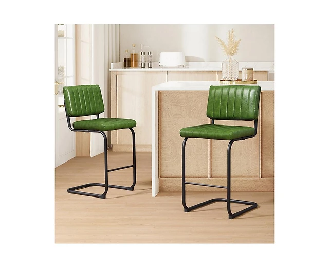 Homlux Upholstered Set of 2 Cantilever Pu Leather Counter Height Barstool with Black Metal Legs