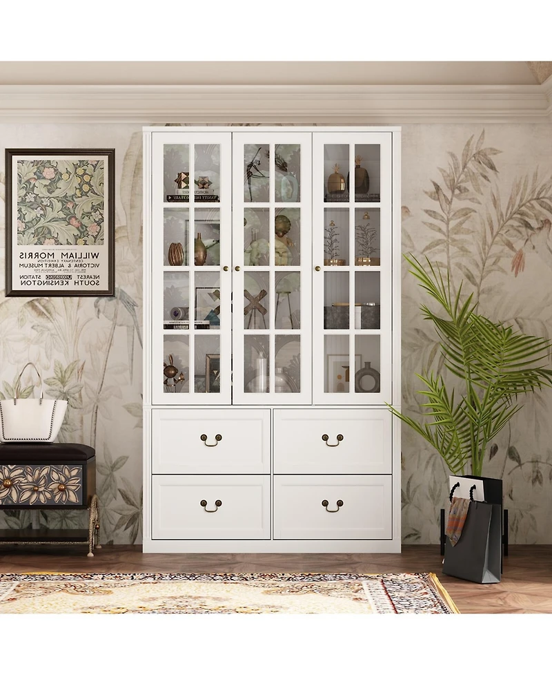 This glass display storage cabinet can be used in any occasion, such as shop, exhibition, home, etc. You can treat it as bookcase, display and curio cabinet, home office file cabinet, dining room buffet sideboard, kitchen pantry cabinet, shoe cabinet, bedroom wardrobe closet and so on. Its design style is modern and simple, the glass panel is transparent and the metal frame is finely processed, which can provide a perfect display and storage space for your items, such as collections, toys, tableware, artwork, etc.