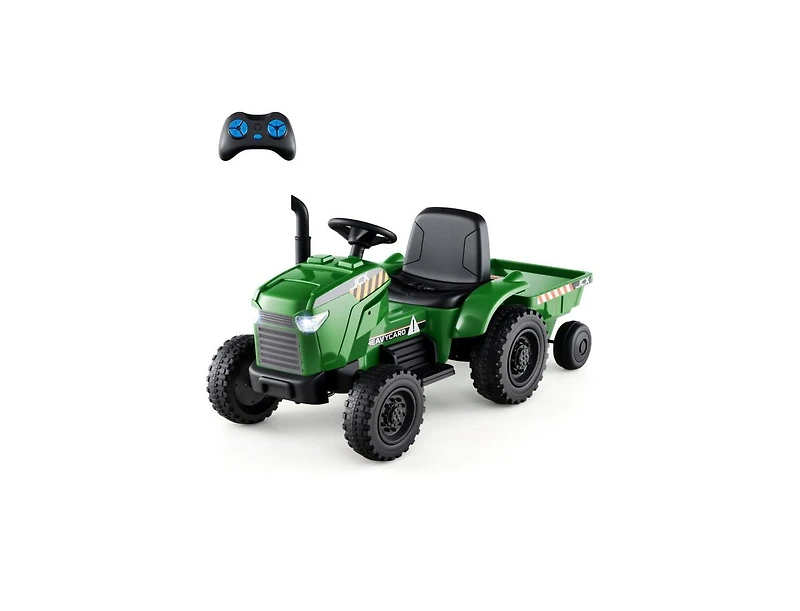 This ride-on tractor features dual 25W motors and a 12V 7AH battery for speeds up to 2.2 mph. With parent remote control, slow start, adjustable seatbelt, and upgraded Eva wheels, it offers safe, smooth fun plus music and detachable trailer for kids 3-8.