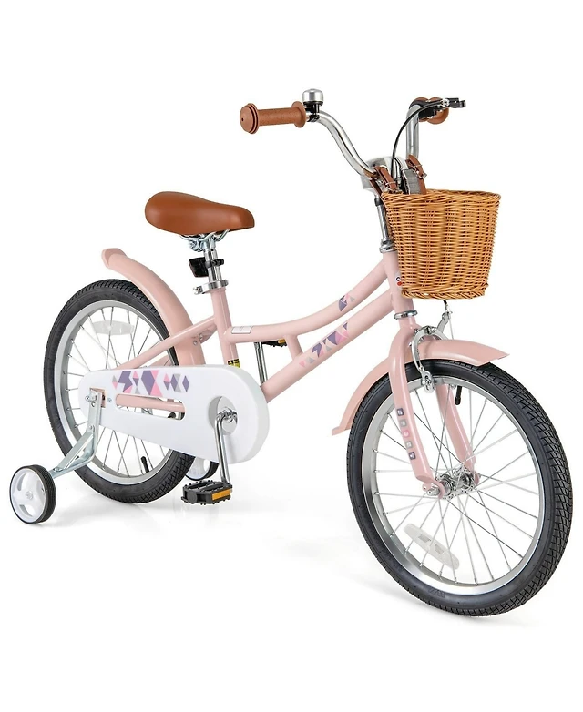 18 Inch Kids Bike Retro Bicycle with Adjustable Height and Basket for Ages 4-8 Years Old