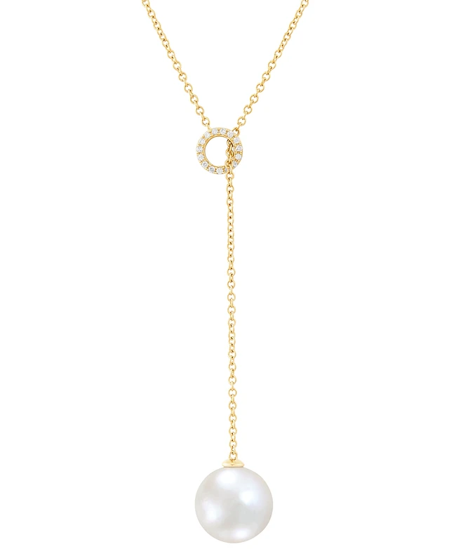 Honora Cultured Ming Pearl (13mm) & Diamond (1/10 ct. t.w.) 20" Lariat Necklace in 14k Gold