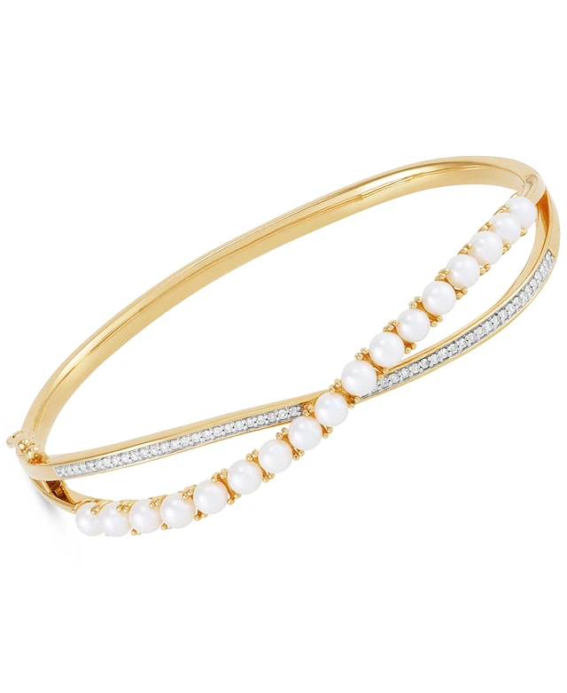 Honora Cultured White Ming Pearl (3-1/2-4mm) & Diamond (1/4 ct. t.w.) Bangle Bracelet in 14k Gold-Plated Sterling Silver