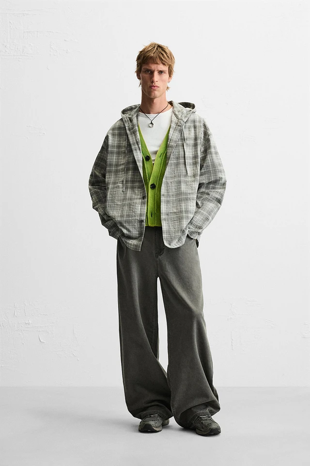 HOODED PLAID OVERSHIRT