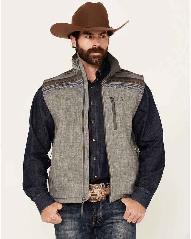 Hooey Men's Southwestern Print Yoke Softshell Vest