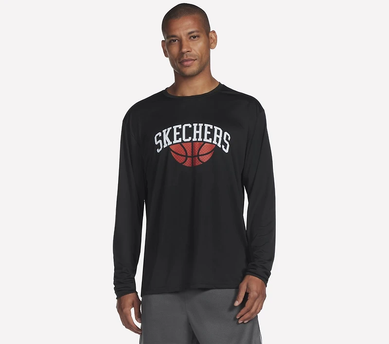 Bring your A-game in comfort everyday with Skechers Hoops Long Sleeve Tee. Made from our breathable GO DRI® performance fabric, this casual style features reinforced shoulder seams for durability and a Skechers® basketball graphic at the center chest.