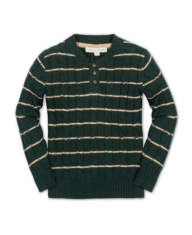 Hope & Henry Boys Organic Long Sleeve Cable Henley Pullover Sweater with Elbow Patches
