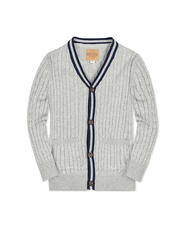 Hope & Henry Boys Organic Long Sleeve Cable Knit Cardigan Sweater with Stripe Trim