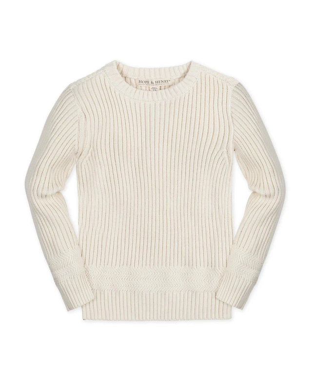 Hope & Henry Boys Organic Long Sleeve Herringbone Detail Crew Neck Pullover Sweater