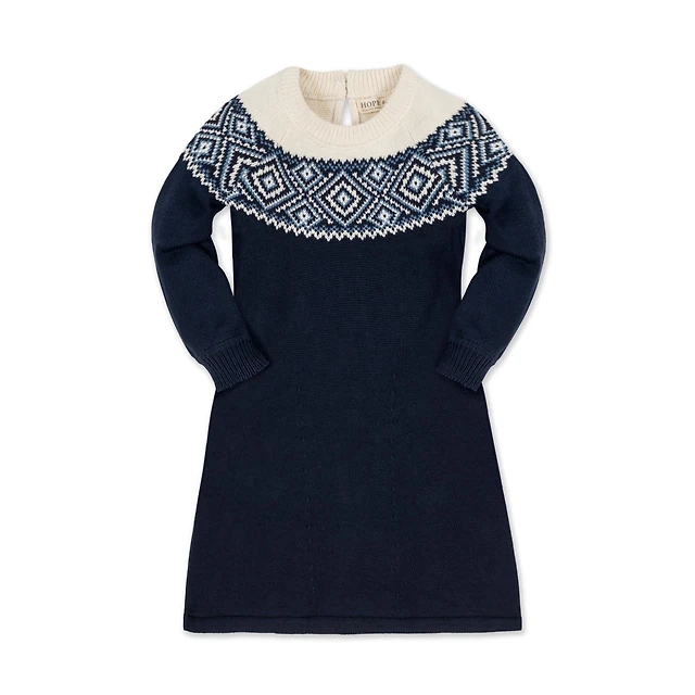 Hope & Henry Little Girls Organic Fair Isle Raglan Sweater Dress