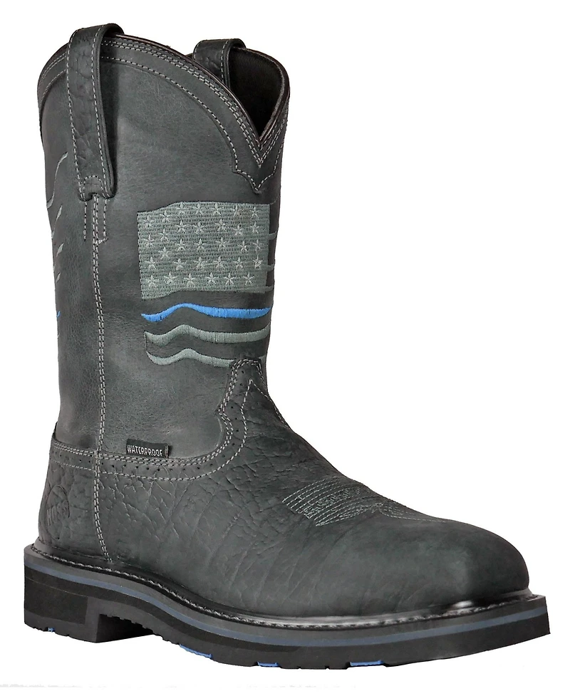 Built for workers who want Western style with serious jobsite protection, the Hoss Rushmore Composite Toe Puncture Resistant Work Boot delivers rugged performance and all-day comfort in a pull-on design. This Western work boot features a composite safety toe certified to Astm F2413-18 M/I/C Eh Pr for impact, compression, electrical hazard, and puncture-resistant protection in a non-metallic build. The full-grain cow rancher leather vamp and leather shaft provide durability with classic Western styling, while pull handles allow easy on and off. A waterproof membrane with moisture-wicking lining keeps feet dry and comfortable. Underfoot, a Pu memory foam insole, Eva midsole, Goodyear welt construction, slip-resistant rubber outsole, and puncture-resistant plate deliver cushioning, stability, and dependable traction in demanding work environments.