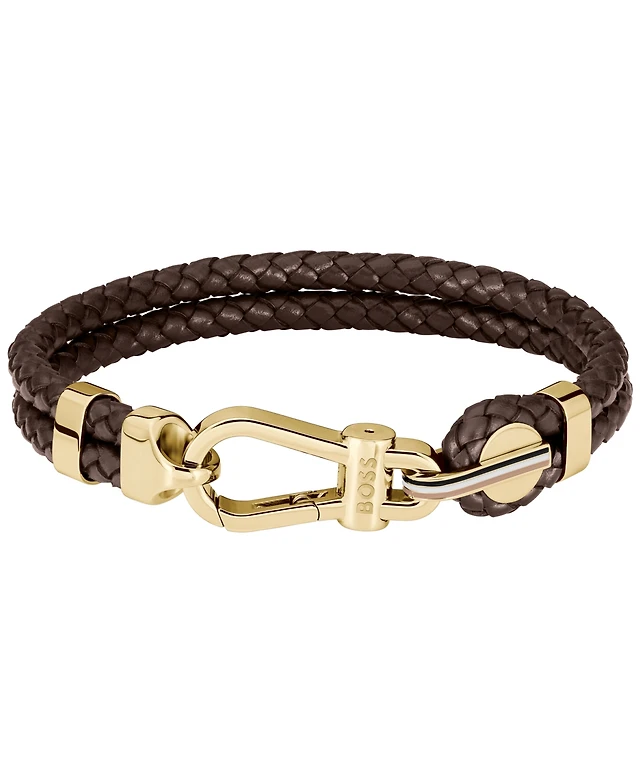 Hugo Boss Sphere Mixed Ionic Plated Brown Leather Yellow Tiger Bracelet