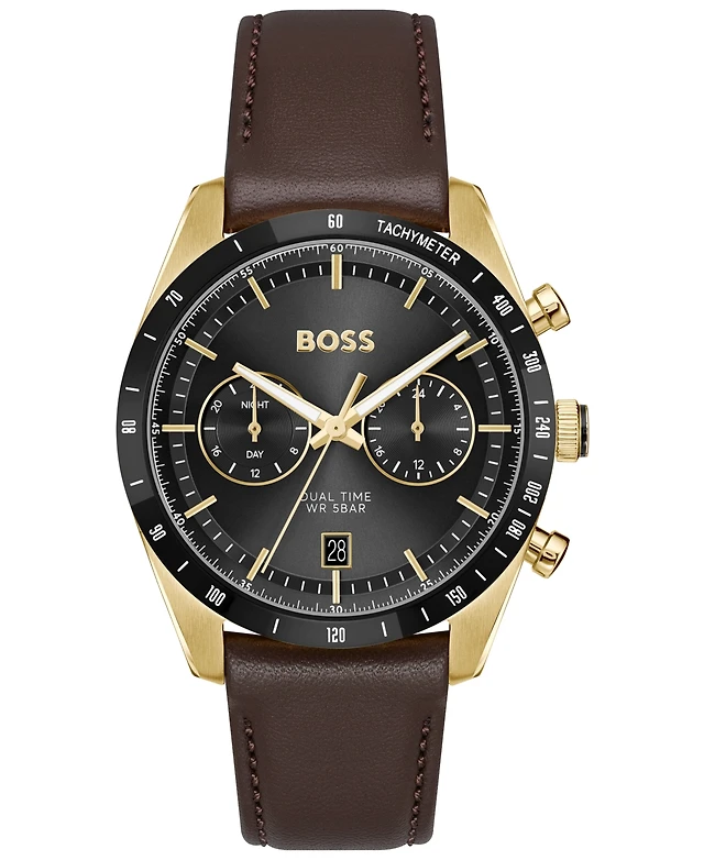 Hugo Boss Men's Tourmaster Quartz Multifunction Brown Calfskin Watch, 41mm