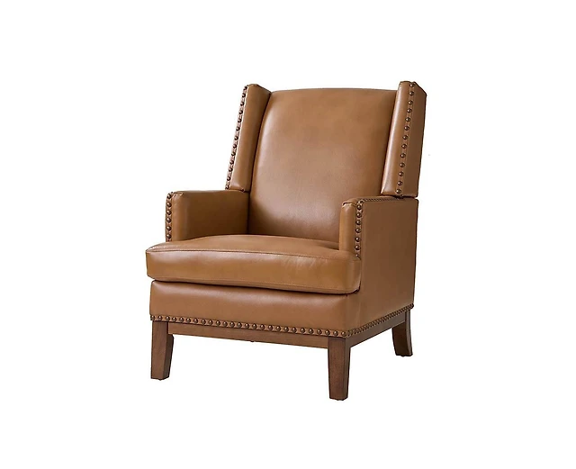 Hulala Home Eugene Traditional Genuine Leather Chair with Tufted Wing Back and Solid Wood