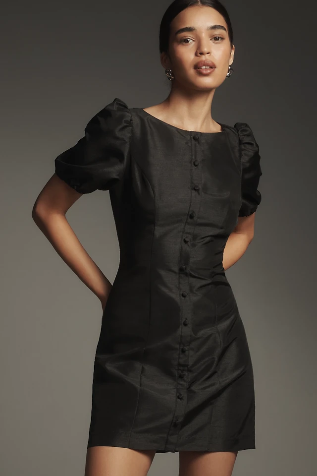 Hutch Puff-Sleeve Boat-Neck Mini Dress
