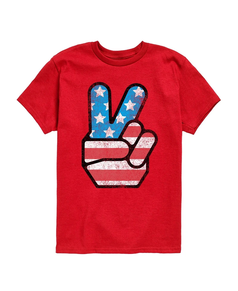Hybrid Boys' 8-20 Instant Message Usa Flag Peace Short-Sleeve Graphic T-Shirt