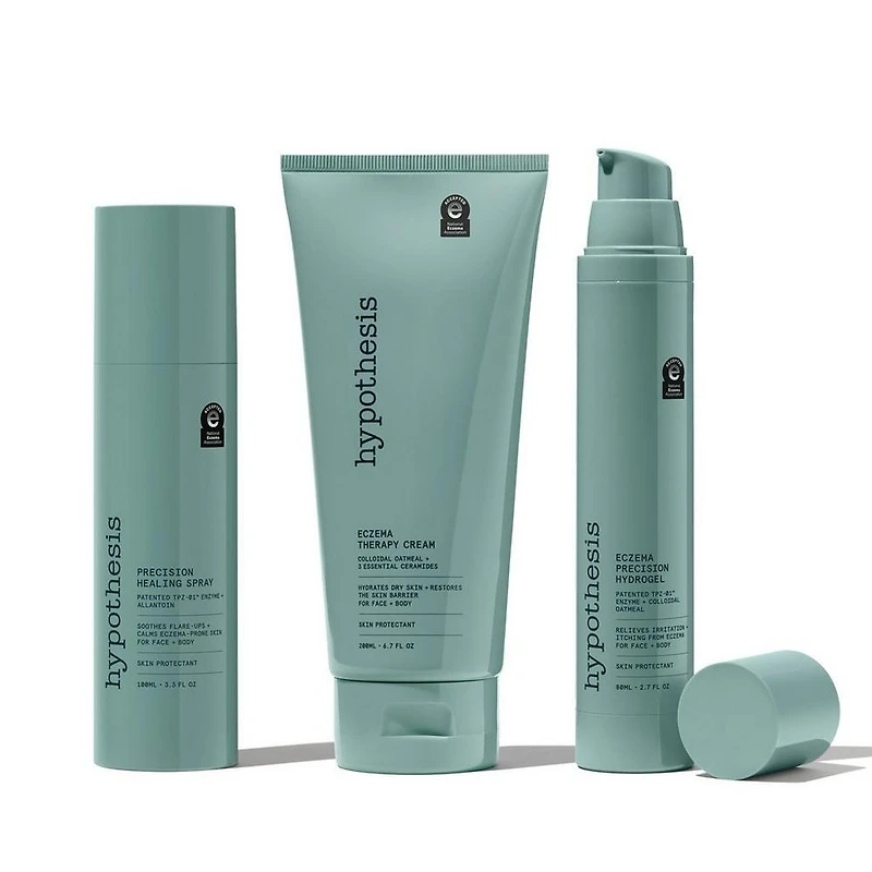 Complete Eczema Care Set. Benefits: 3-piece set of full-size eczema care essentials for real relief of eczema flare-ups. Microbiome-friendly Eczema Precision Hydrogel is formulated with TPZ-01enzyme to target eczema-associated Staph aureus bacteria while preserving beneficial microbes. Convenient, easy-to-use Precision Healing Spray with TPZ-01 is ideal for hard-to-reach areas or on-the-go application. Deeply nourishing Eczema Therapy Cream for face and body seals in moisture and restores the skin barrier. 3-step routine relieves the irritation, itching and redness of eczema while balancing the skins protective microbiome. Dermatologist approved, hypoallergenic and clinically tested for safety and efficacy. Accepted by the National Eczema Association (NEA) and EWG Verified. Certified Microbiome-Friendly for Eczema by MyMicrobiome. Steroid free and fragrance free. Cruelty free and Leaping Bunny certified. Key Ingredients: The patented TPZ-01 enzyme selectively targets and kills 99.99% of eczema-associated Staph aureus bacteria within 5 minutes while preserving beneficial microorganisms. 1% colloidal oatmeal soothes itching and calms irritation from eczema. Multifunctional skin protectant allantoin soothes and relieves irritation and flare-ups. Pro-Vitamin B5 and Sorbitol are two potent moisture magnets that hydrate, comfort, and help replenish the skin barrier. 3 essential ceramides work in tandem to help restore the skins natural moisture barrier. An advanced moisture complex of hyaluronic acid, sodium PCA, urea, and glycerin provide immediate hydration for dry, irritated skin. Bisabolol, the key anti-inflammatory component in chamomile, helps to reduce redness. Includes: Eczema Precision Hydrogel 80 mL. Precision Healing Spray 100 mL. Eczema Therapy Cream 200 mL.