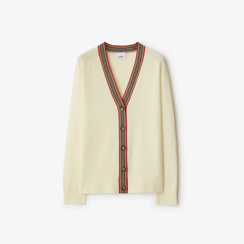 Icon Stripe Trim Wool Cardigan in Ivory white - Women | Burberry® Official in Bloomington, MN