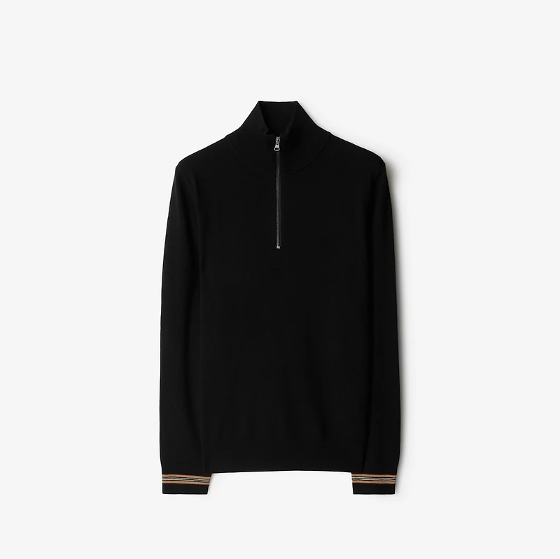 Icon Stripe Trim Wool Half-zip Sweater in Black - Men | Burberry® Official in Bloomington, MN