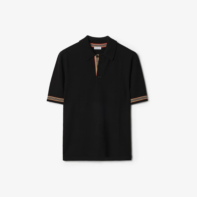 Icon Stripe Trim Wool Polo Shirt in Black - Men | Burberry® Official in Bloomington, MN