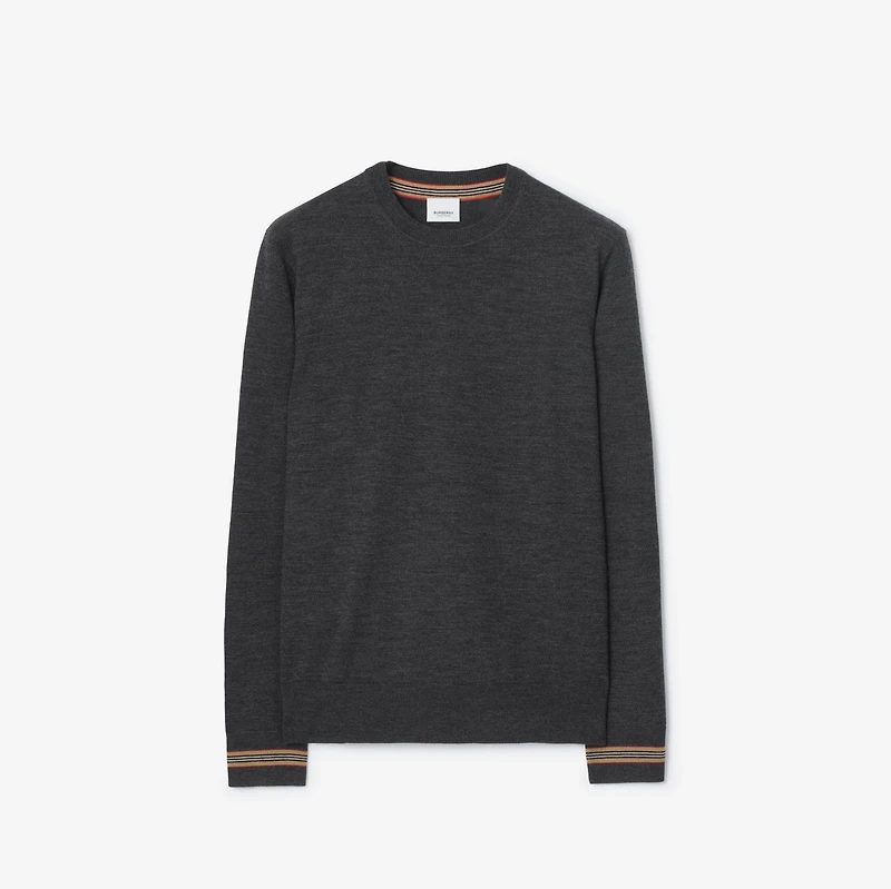 Icon Stripe Trim Wool Sweater in Dark grey melange - Men | Burberry® Official