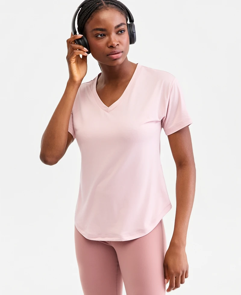 Id Ideology Women's V-Neck Short-Sleeve Performance Tee, Macy's Exclusive