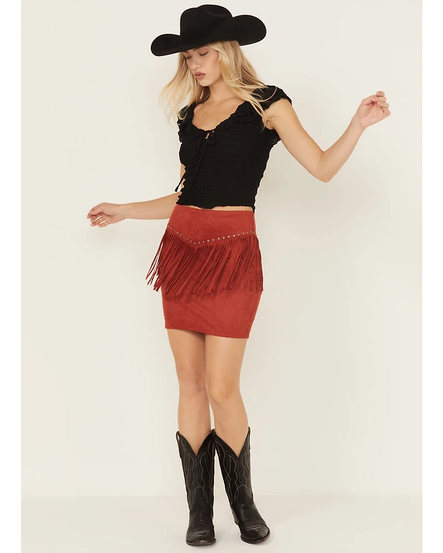 Idyllwind Women's Wylie Studded Fringe Faux Suede Mini Skirt