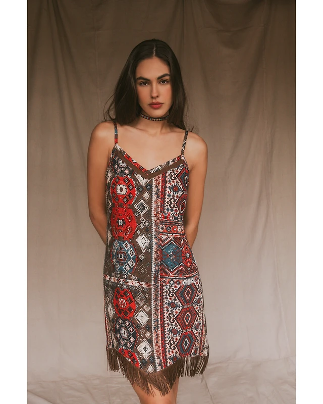 Idyllwind Women's Yearling Printed Fringe Mini Slip Dress