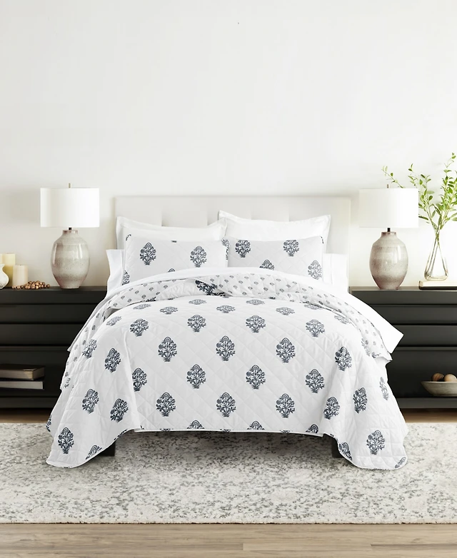 ienjoy Home Stamped Bloom Reversible 3-Pc. Quilt Set, King/California King