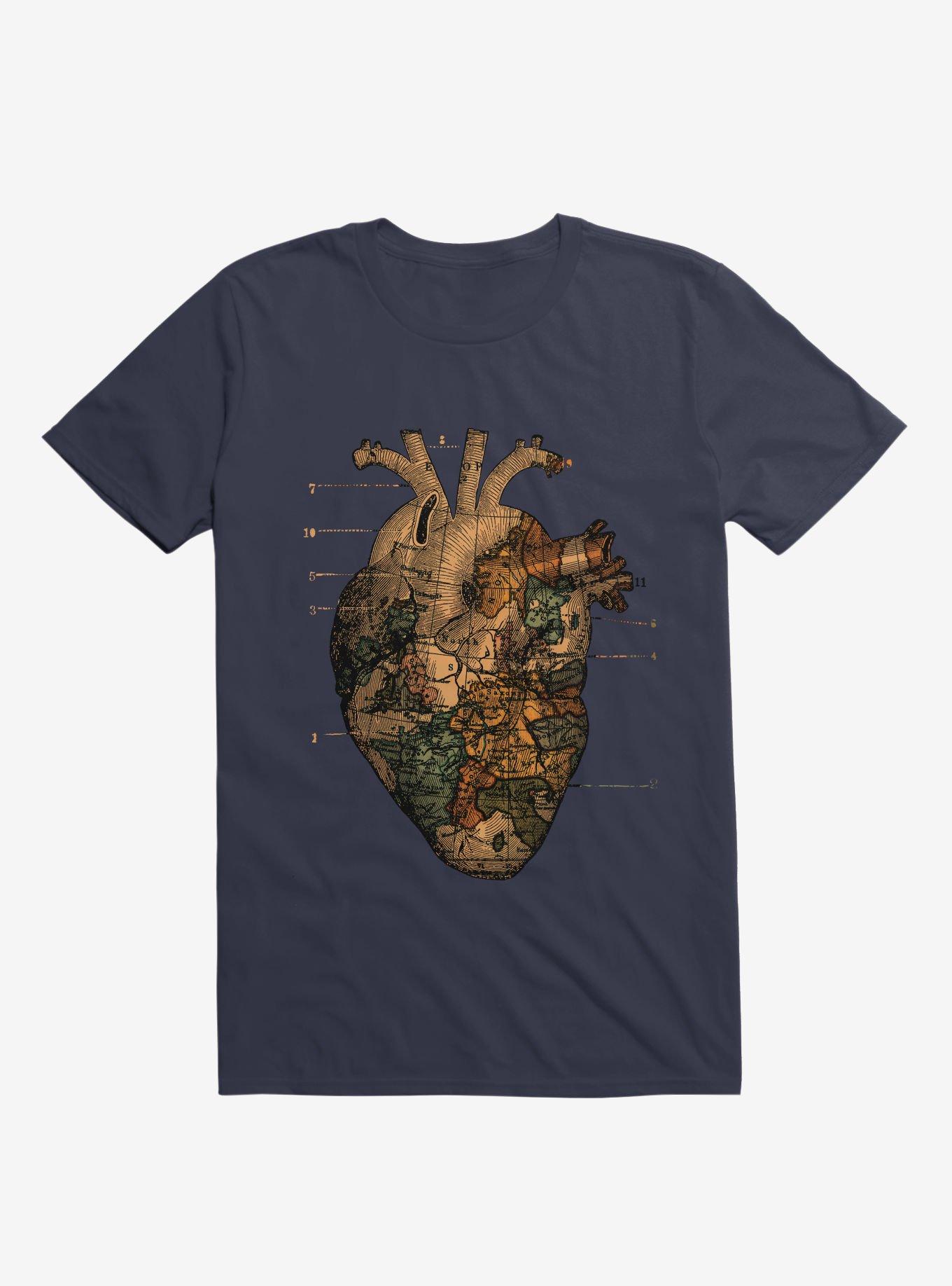 Follow your heart. This lightweight navy blue graphic tee features a map of the world over an image of the body's ticker. Officially licensed art from Tobe Fonseca.