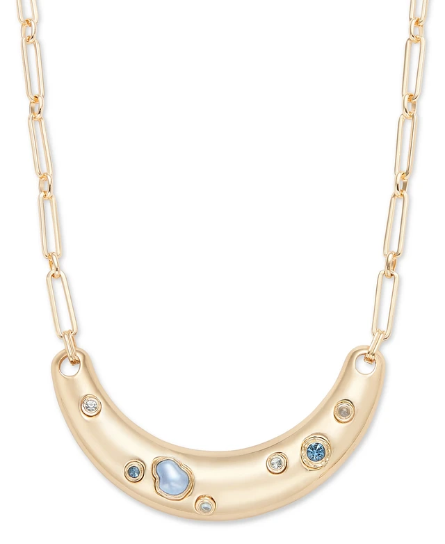 I.n.c. International Concepts Gold-Tone Crystal & Imitation Pearl Curved Bar Statement Necklace, 16-1/2" + 3" extender, Exclusively at Macy's