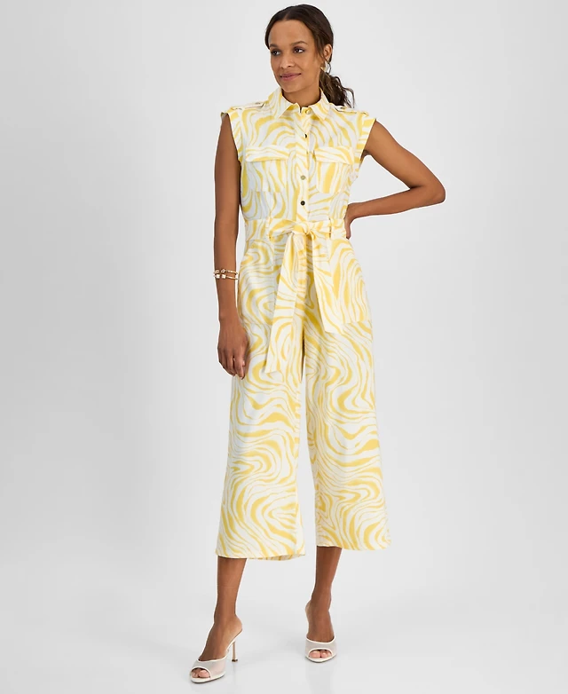 I.n.c. International Concepts Petite Printed Linen-Blend Utility Jumpsuit, Exclusively at Macy's