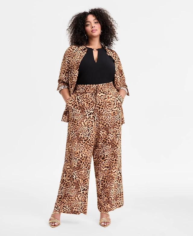 I.n.c. International Concepts Plus Size Cheetah Printed High-Rise Pants, Exclusively at Macy's