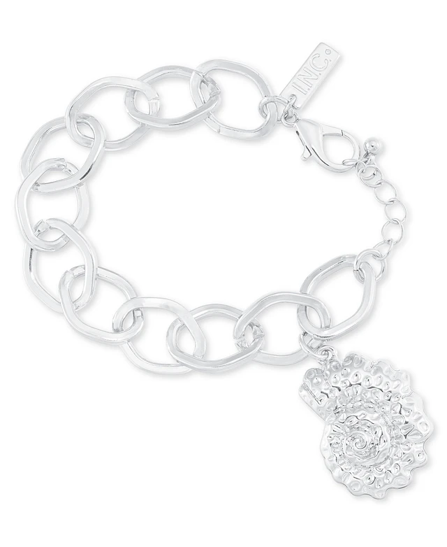 I.n.c. International Concepts Rhodium-Plated Textured Shell Charm Link Bracelet, Exclusively at Macy's