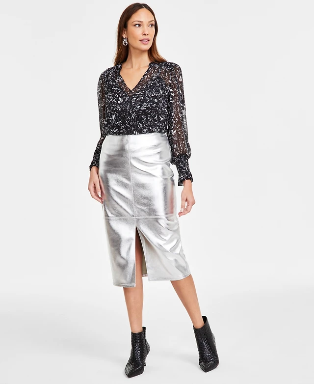 I.n.c. International Concepts Women's Metallic Slit-Front Pencil Skirt, Exclusively at Macy's