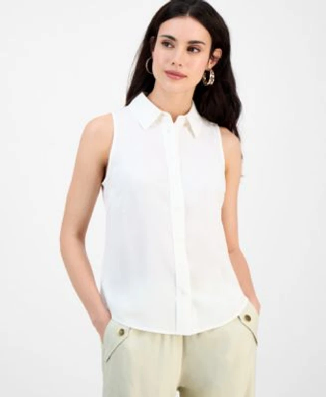 I.N.C. International Concepts Womens Printed Button Down Sleeveless Blouse P Xs Xxl Exclusively At Macys