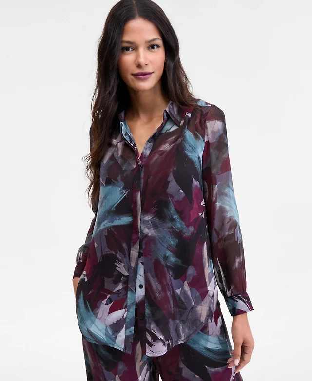 I.n.c. International Concepts Women's Printed Long-Sleeve Blouse, Macy's Exclusive