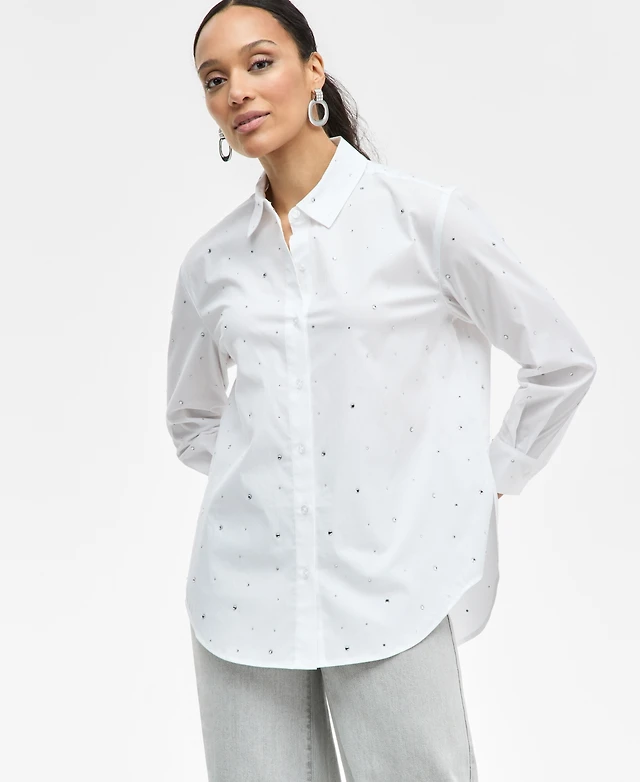 I.n.c. International Concepts Women's Rhinestone Shirt, Exclusively at Macy's