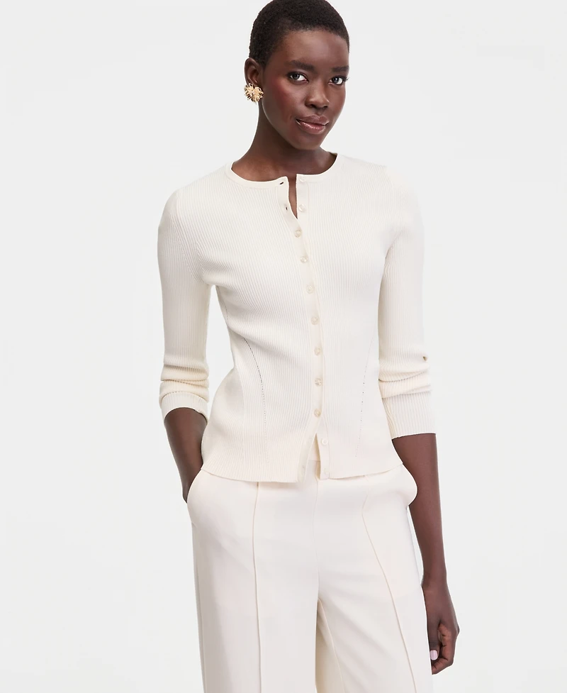 I.n.c. International Concepts Women's Ribbed Crewneck Cardigan, Macy's Exclusive