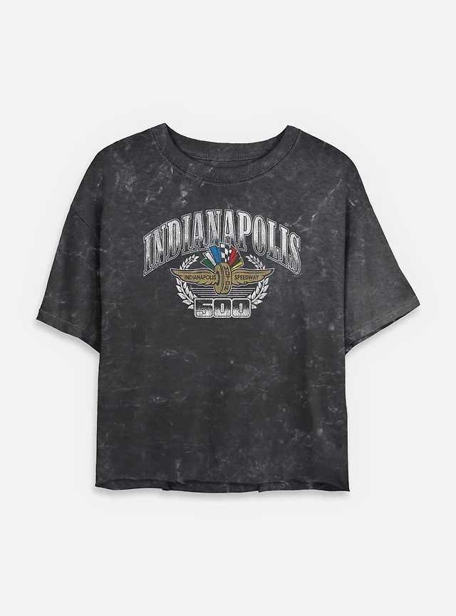 Indianapolis 500 Regal Crest Mineral Wash Womens Crop T-Shirt