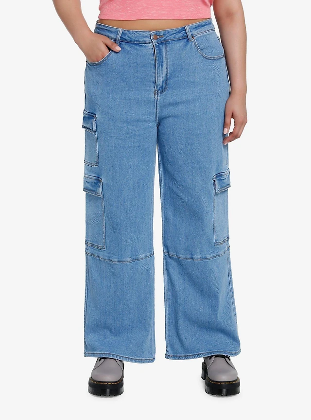 Indigo Wide Leg Cargo Denim Pants Plus Size