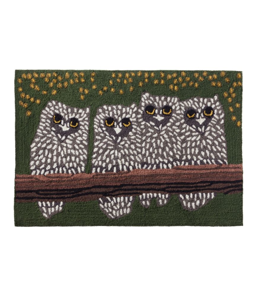 Refresh and protect any space -- indoors or out -- with our whimsical owl-themed accent rug, handhooked with durable synthetic yarns for long-lasting color.