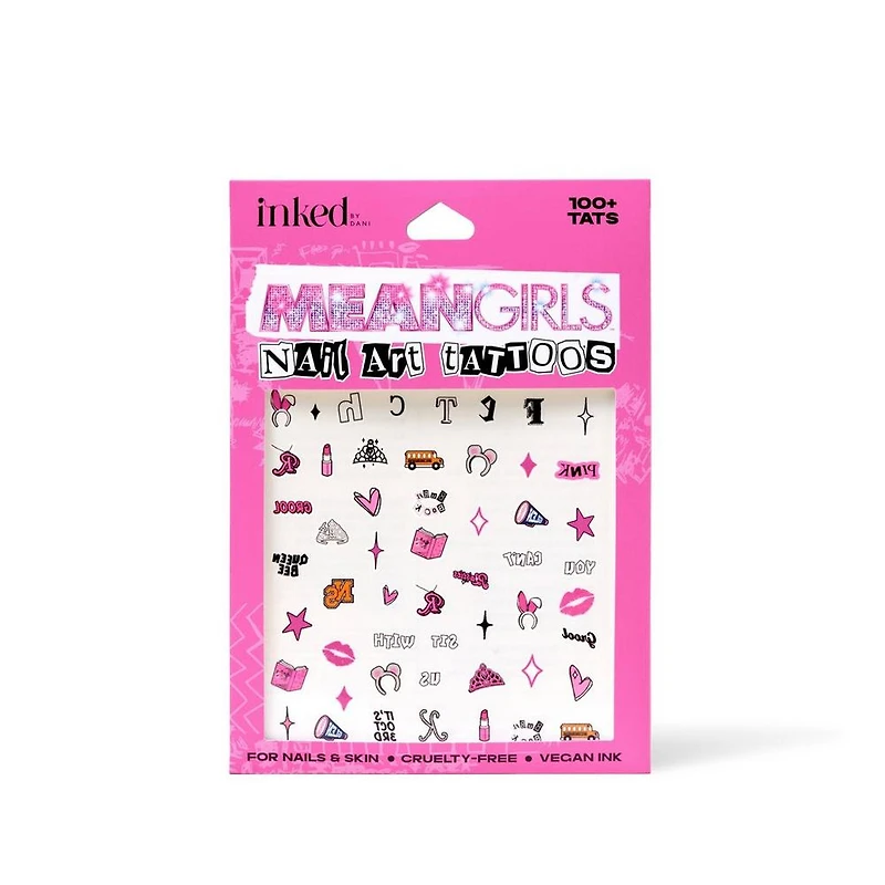 INKED by Dani x Mean Girls: Fetch Nail A. Features: EASY TO APPLY WITH JUST WATER. LASTS A FEW DAYS UP TO 2 WEEKS. HAND-DRAWN DESIGNS. VEGAN INK. CRUELTY-FREE INK. NON-TOXIC INK. WATERPROOF INK. SIZES RANGE FROM INCH TO 2 INCHES. MADE IN THE U.S.A.. : :