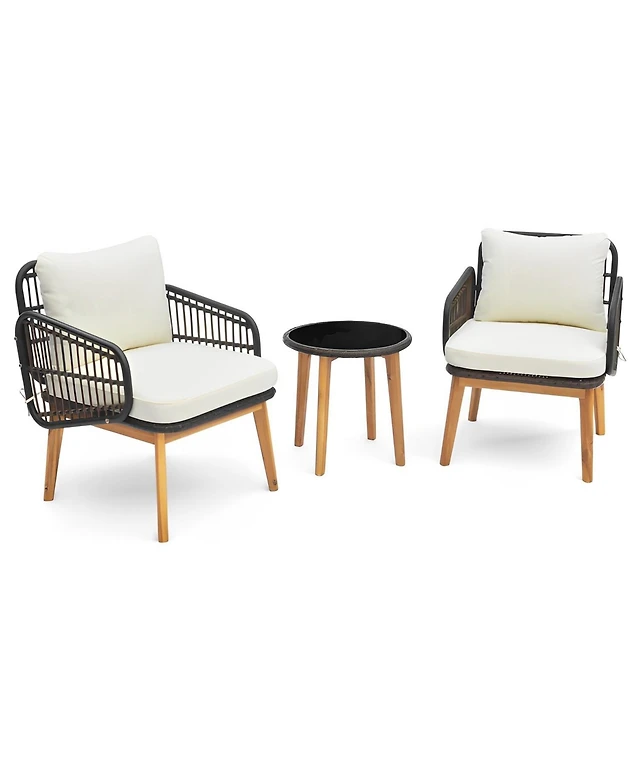 Gouun 3 Pieces Patio Furniture Set with Tempered Glass Table-Off