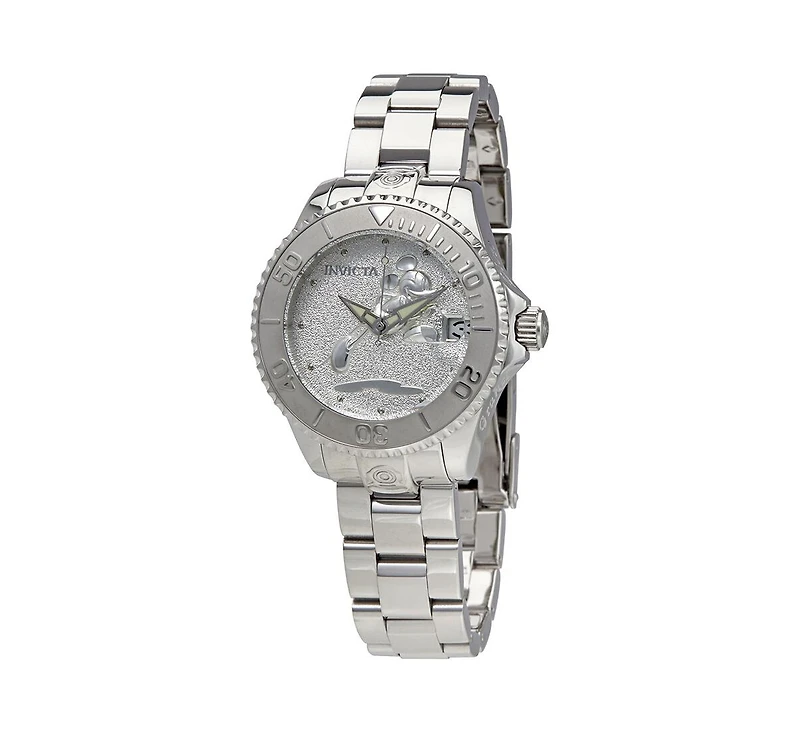 This Invicta watch from the Disney Limited Edition collection holds an Automatic movement, and it features a sturdy steel case. On its face you can find a silver metal dial covered by a durable Mineral Crystal. This style is finished by a reliable silver stainless steel band, and it offers 300m water resistance. Since its inception in La Chaux-de-Fonds, Switzerland in 1837, a commitment to excellence and innovation has been at the heart of every collection created by Invicta.