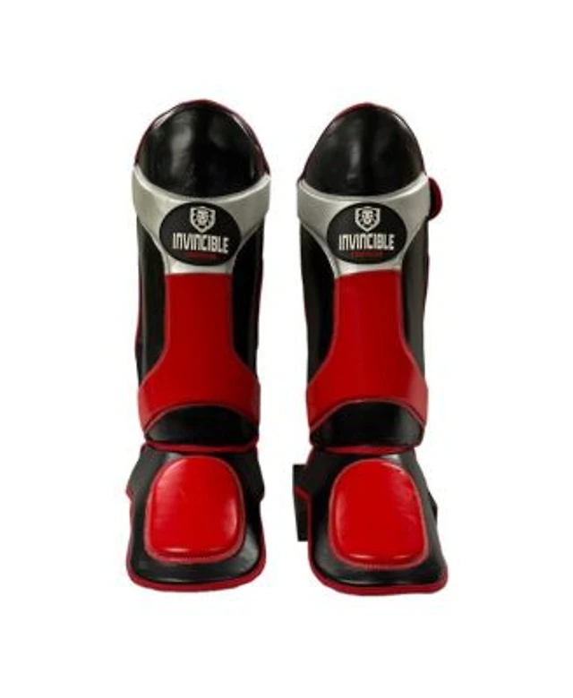 Invincible Shin Instep Premium Synthetic Leather Shin Guards For Muay Thai Mma Martial Arts Training Sparringblack Red Silver Durable Protection For Adults Teens Men Women