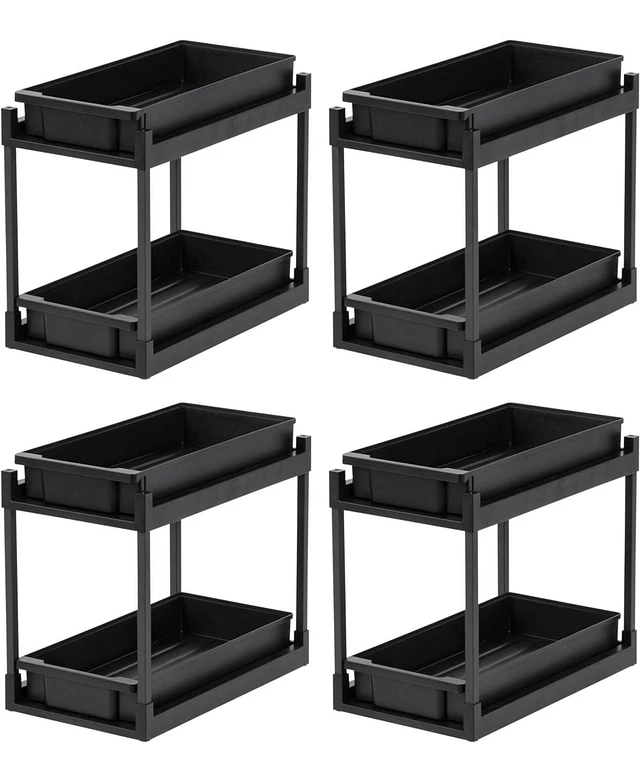 Iris Usa 2-Tier Under Sink Organizer, 4 Pack, Storage with Sliding Drawers - Versatile solution for Office, Kitchen or Bathroom, Black