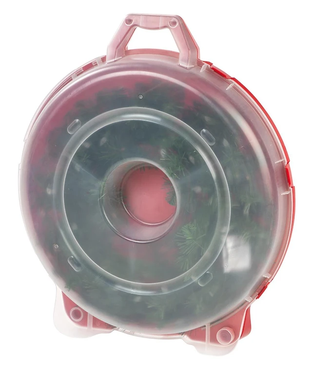 Iris Usa 24" Wreath Storage Container Box, Clear/Red