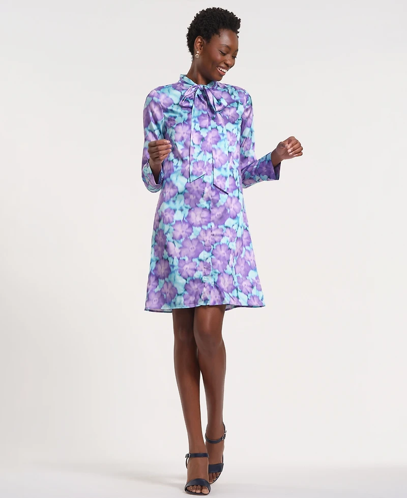 Isaac Mizrahi Women's Long-Sleeve Bow-Tie Neck Dress
