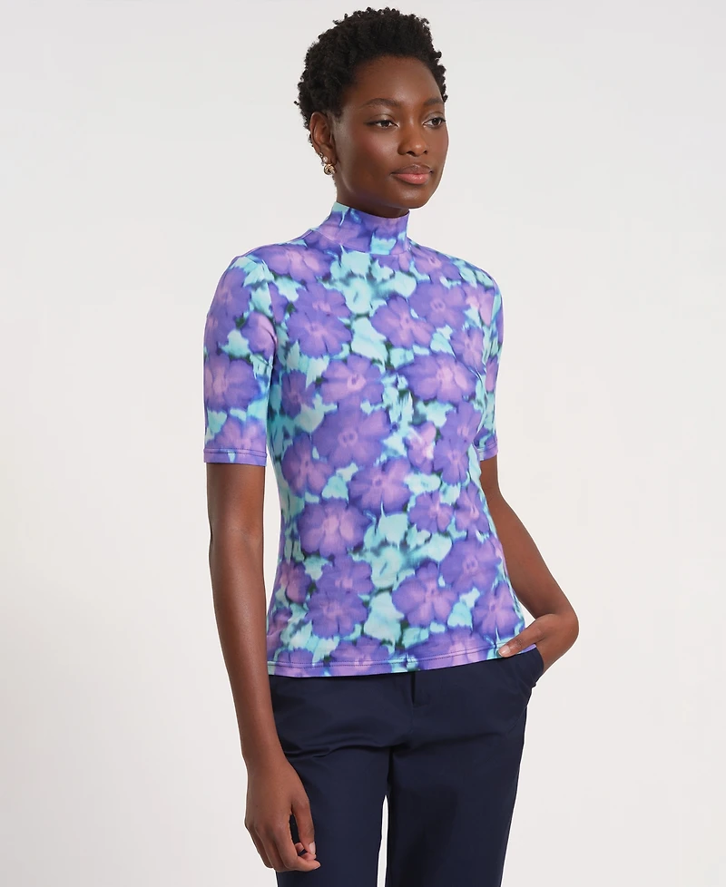 Isaac Mizrahi Women's Short-Sleeve Turtle Neck Knitted Top