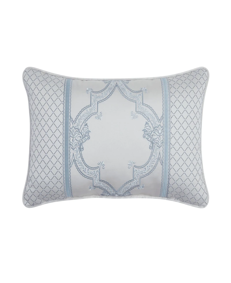 The boulevard boudoir pillow is framed with an elegant woven medallion pattern in cool grey and blue colors. This luxurious accent pillow and is made to coordinate with the Boulevard bed set for a complete timeless traditional look.